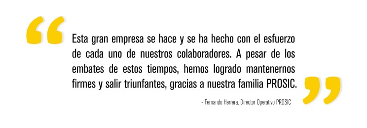 PROSIC es más que sus líderes. Esta empresa la conforman todos los que de alguna manera contribuyen a esta pequeña, pero gran familia. Les agradezco su esfuerzo para salir adelante y los invito a seguir luchando para ser más fuertes y contar nuevas historias por los próximos 25 años.
